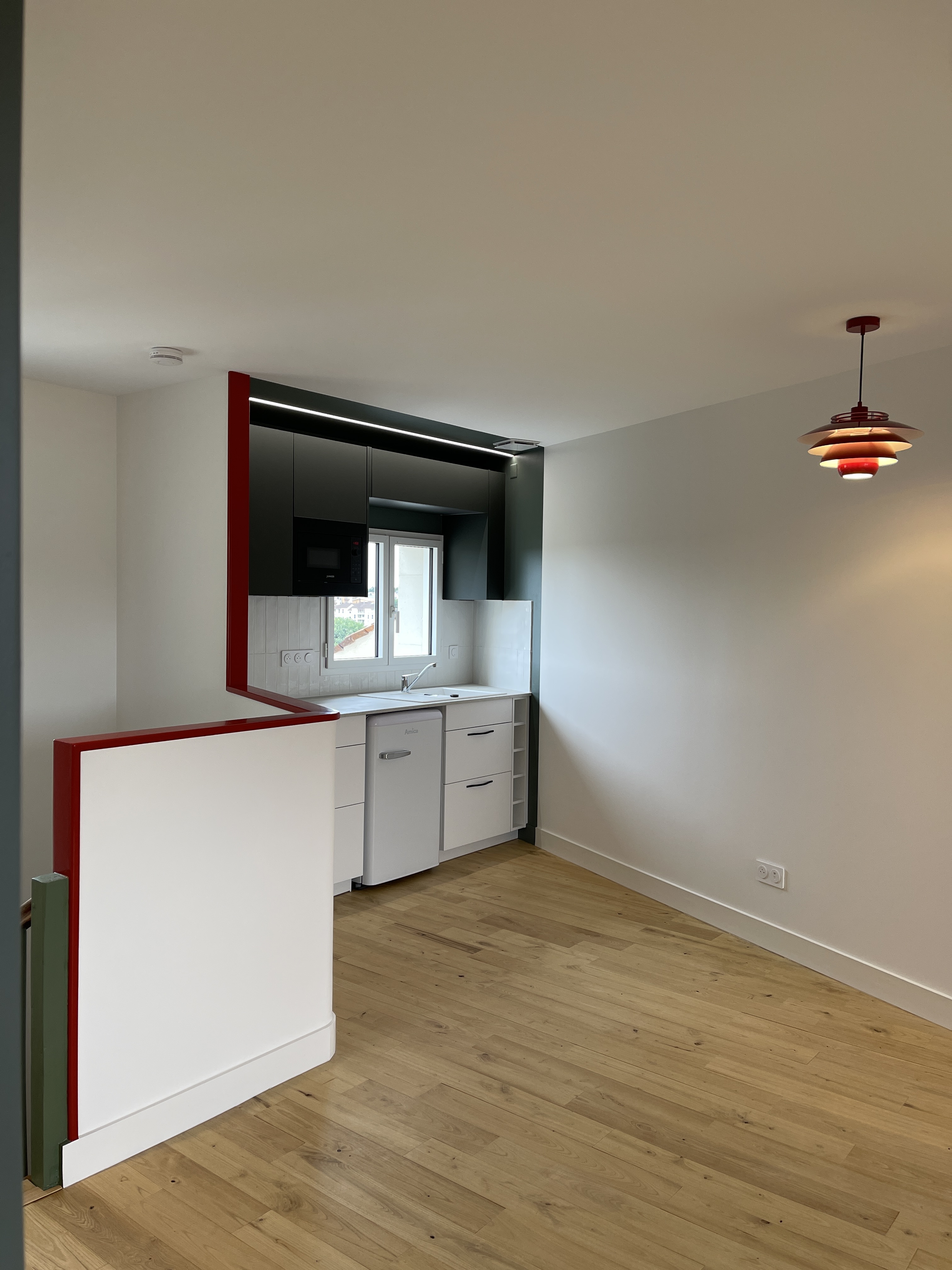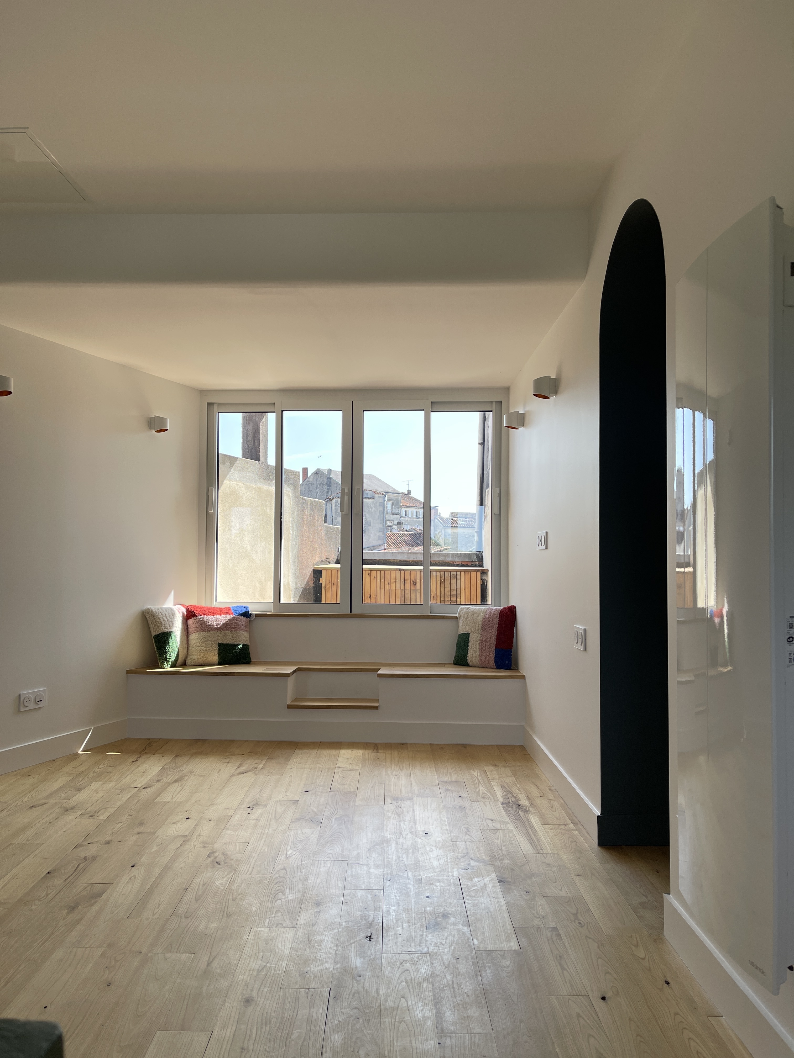 Grâce à des aménagements sur mesure et à un travail précis sur les circulations et les volumes, cet ancien duplex contraint est devenu un logement lumineux, confortable et prêt à la location.