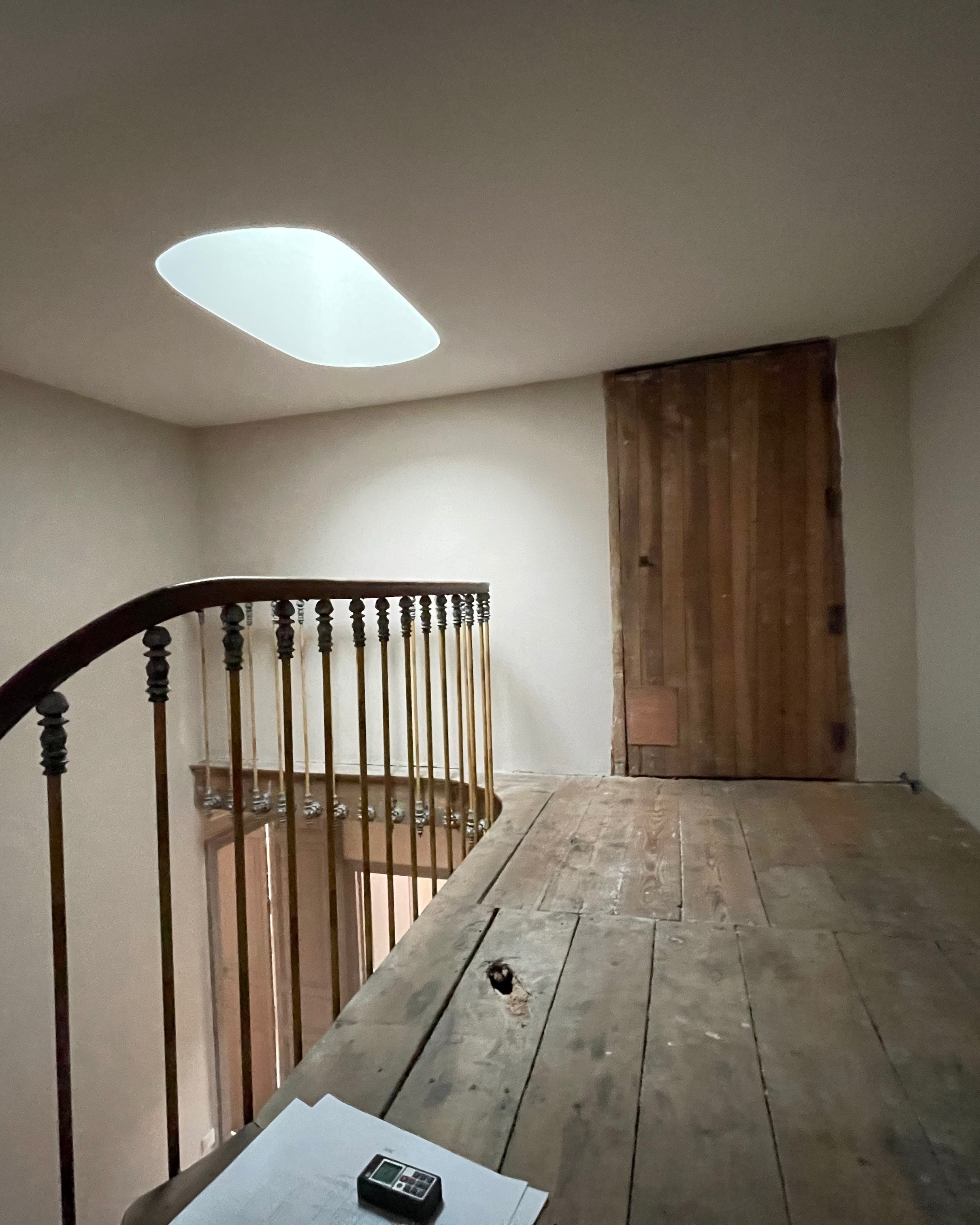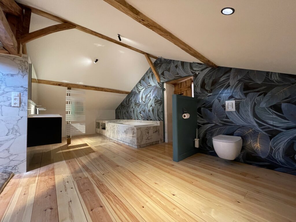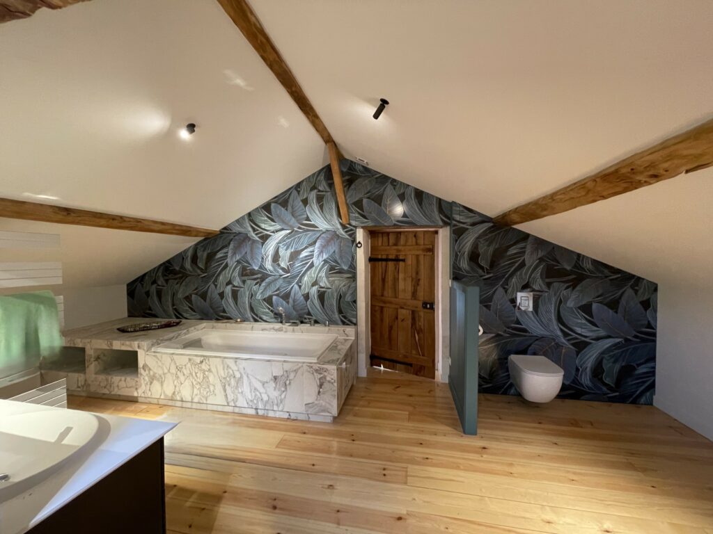 Le client souhaitait des espaces de vie très ouverts, ce qui nous a conduits à supprimer l’ensemble des cloisons existantes. Cette opération a également permis d’améliorer l’étanchéité à l’air et de renouveler entièrement l’isolation, tout en réduisant considérablement les ponts thermiques. Les planchers bas ont